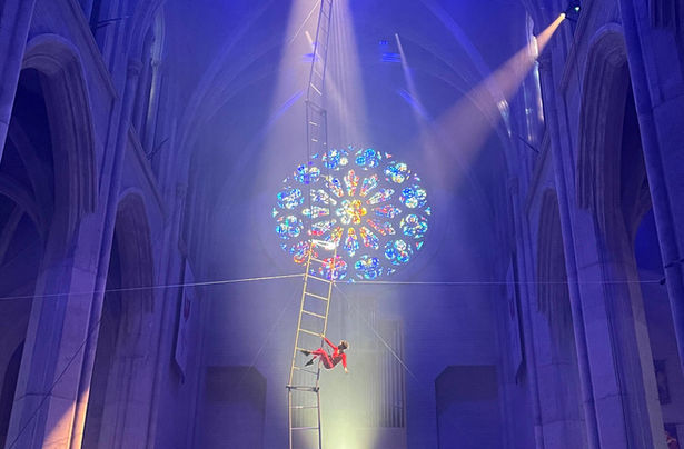 (2022) Four day performance installation directed by Joanna Haigood, located in San Francisco’s Grace Cathedral. The cathedral's stunning gothic design provided a unique and profound site for exploration of faith, community, and the show's theme Love. The incredible props designed by Wayne Campbell and Sean Riley included an anchored 100 foot ladder and 70-foot swinging pendulum. Collaborators on the project included composer Walter Kitundu, master rigger David Freitag, lighting designers Norm Schwab and Krissy Kenny of Lightswitch, and dancers Veronica Blair, Suzanne Gallo, Nina Sawant, Saharla Vetsch, Helen Wicks. Learn more about the show here.