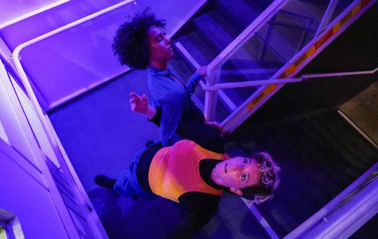 Ciarra D'Onofrio performed a breathtaking vertical dance duet, with dance partner Veronica Blair, on a floating plexiglass platform suspended in the 200 foot tall dome of City Hall. As the platform descended above the audience, the dancers explored themes of equity, balance, and reworking racist social systems to work for everyone.
